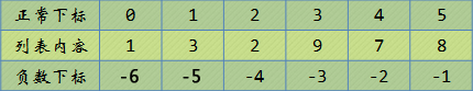 正常索引是從左到右索引,負數索引是從右到左。
