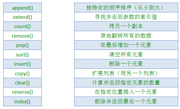 3.請將左邊列表的內置方法與右邊的註釋連線,並圈出元組可以使用的方法。