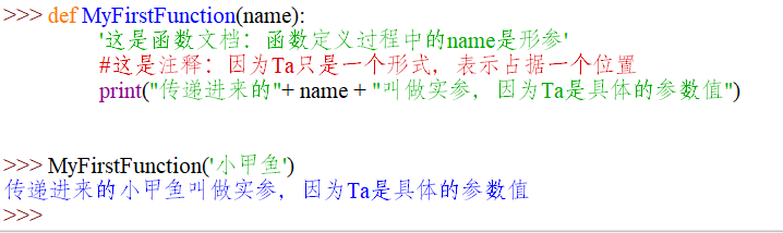 >>> def MyFirstFunction(name):