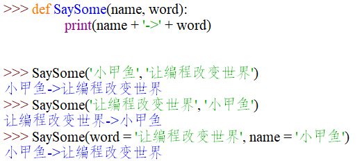 >>> SaySome(words='讓編程改變世界!', name='小甲魚')
