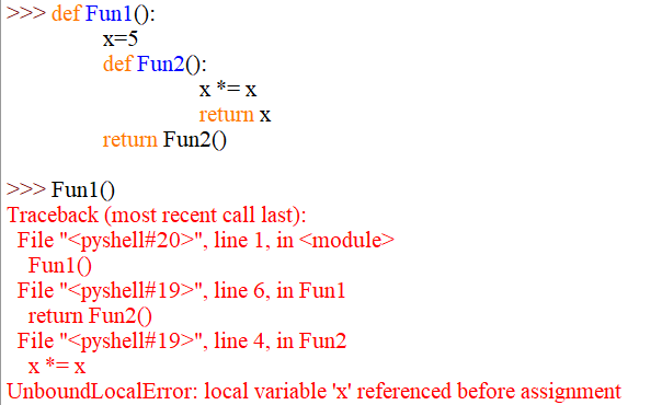 因為這裡的x *= x中的x被認為是一個局部變量,且沒有被定義,所以報錯。如果需要在局部使用全局的變量,需要用到nonlocal關鍵字,這個關鍵字的使用方法與global相同。