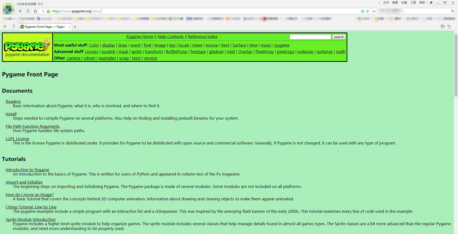 我們不得不說,Pygame的官網是有詳細的文檔的: