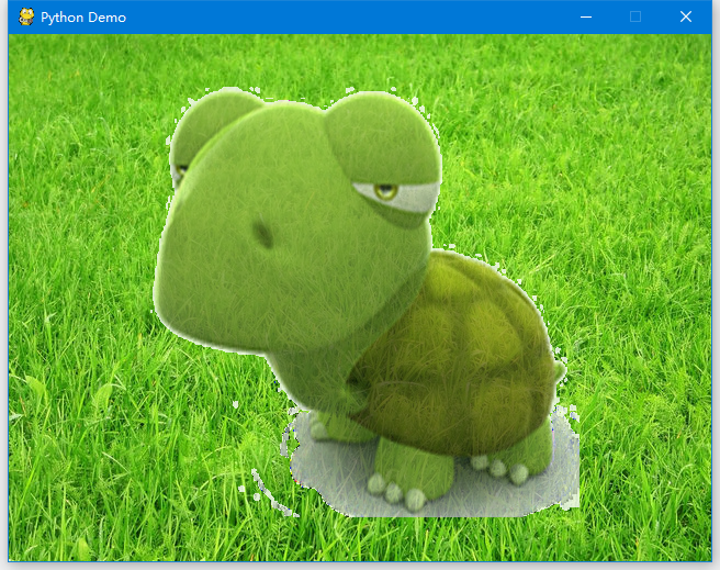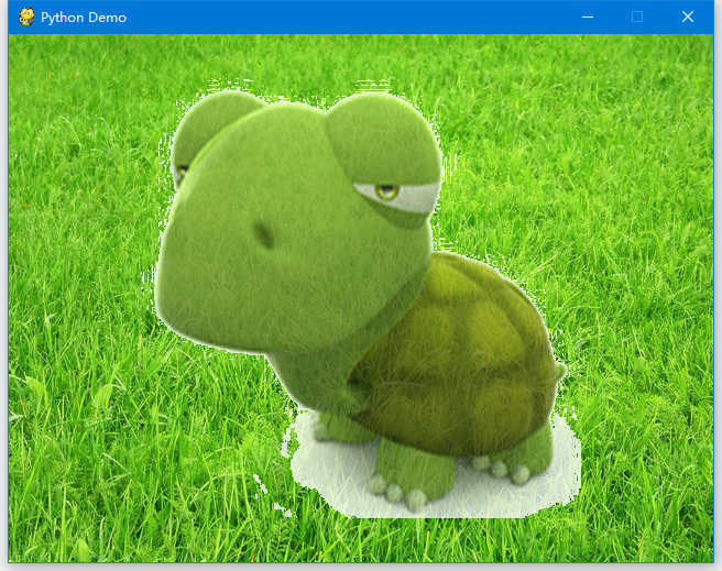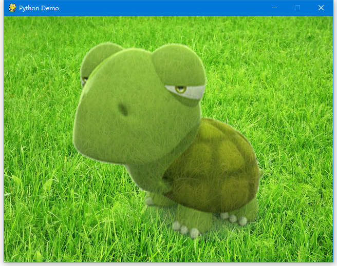 Pygame 支持三種透明度類型:colorkeys,surface alphas 和pixel alphas(溫馨提示:colorkeys 是指設置圖像中的某個顏色值為透明(比如說上面的烏龜有很多種綠色,我把其中一種綠色變為透明,那麼在這個圖片裡面,與這個顏色相同的部分都不見了,取而代之的是背景的顏色,因為透明事實上就是把背景顯示出來。),surface alphas 是調整整個圖像的透明度,pixel alphas 則是獨立設置圖像中每一個像素的透明度)。
